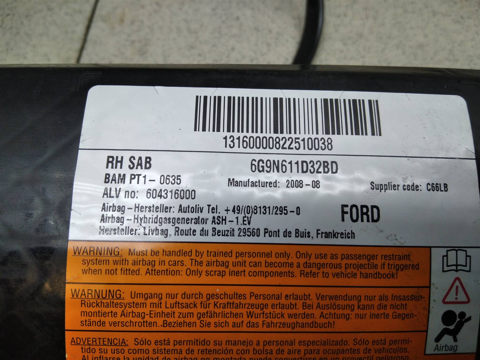 | Оригинальный номер | 1580149 |