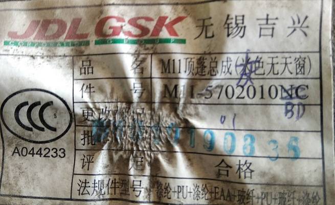 Обшивка потолка Chery (Чери) M11 2010-2016 (УТ000238764)