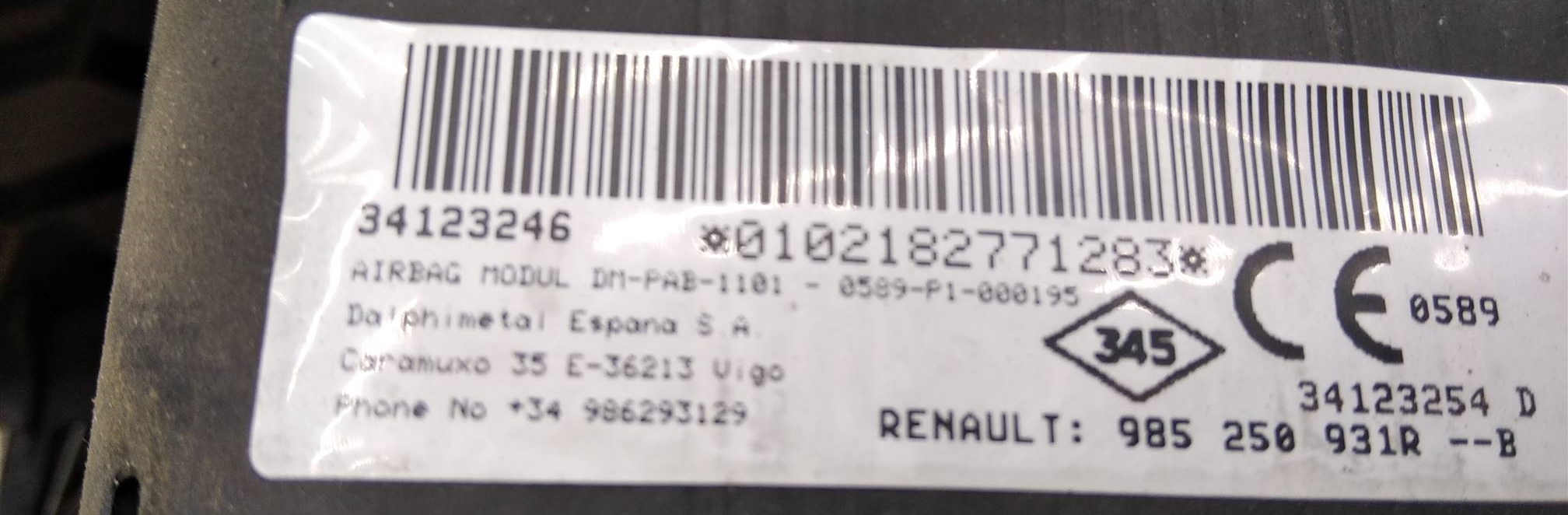 | Оригинальный номер | 985250931R |